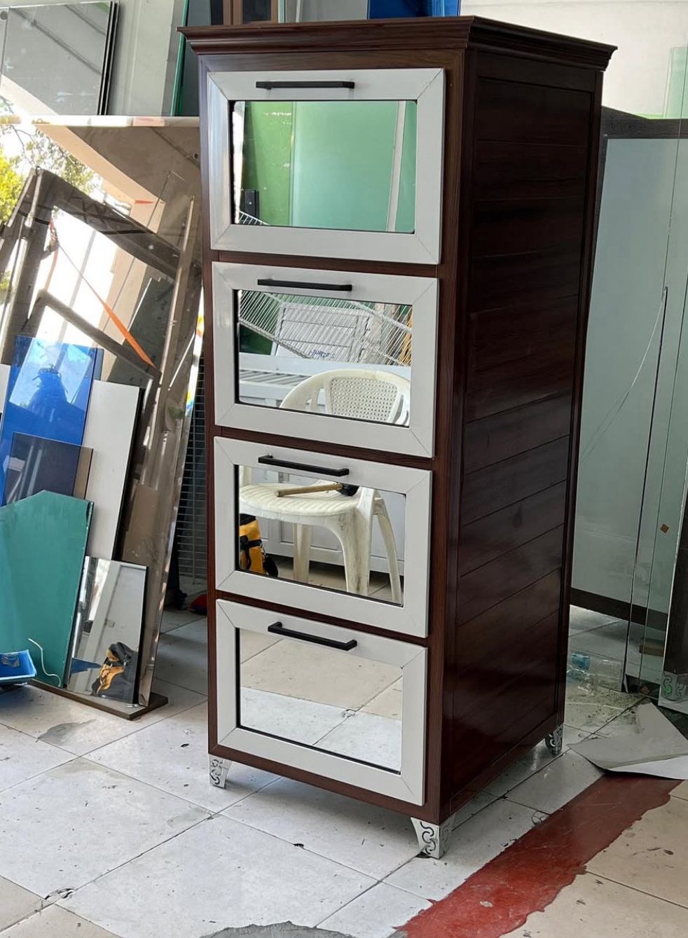El acabado en aluminio le da un toque contemporáneo, combinando perfectamente con cocinas modernas, industriales o minimalistas. Muchas versiones incluyen detalles en vidrio templado o acero inoxidable que elevan aún más su apariencia estética. Incluso hay modelos que incluyen ruedas giratorias, lo que permite movilizarla con facilidad cuando se necesite limpiar o reacomodar el espacio.
