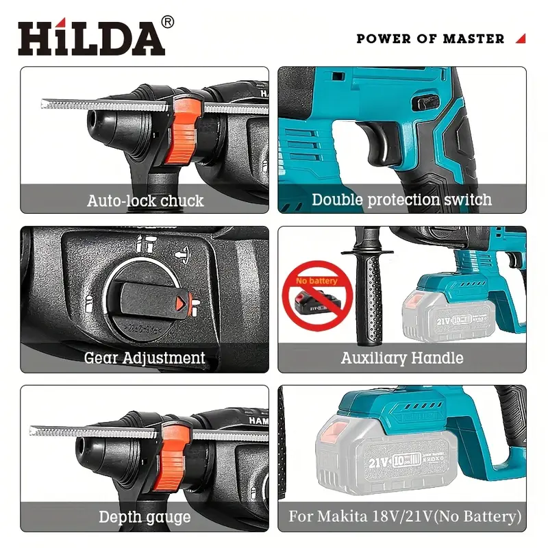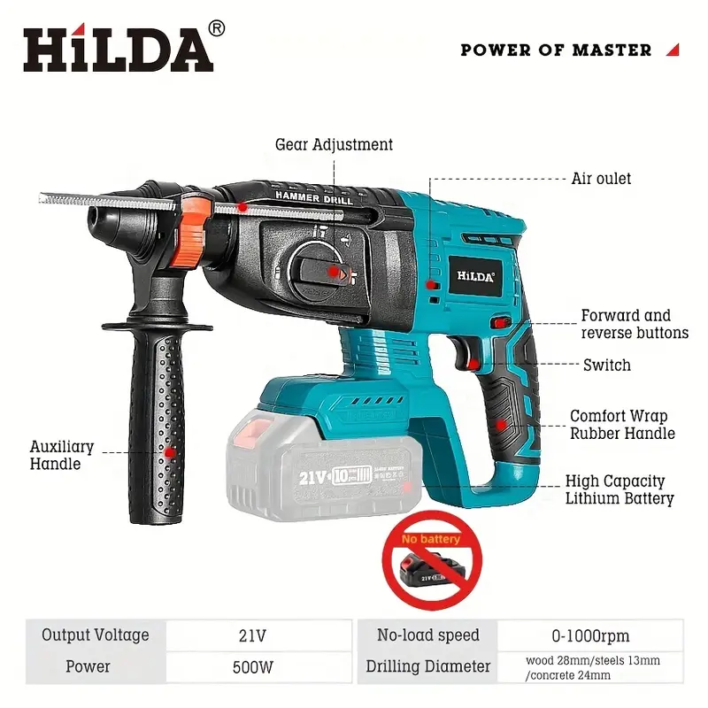 Perforadora de Impacto Eléctrica Inalámbrica HILDA sin Escobillas para Hormigón